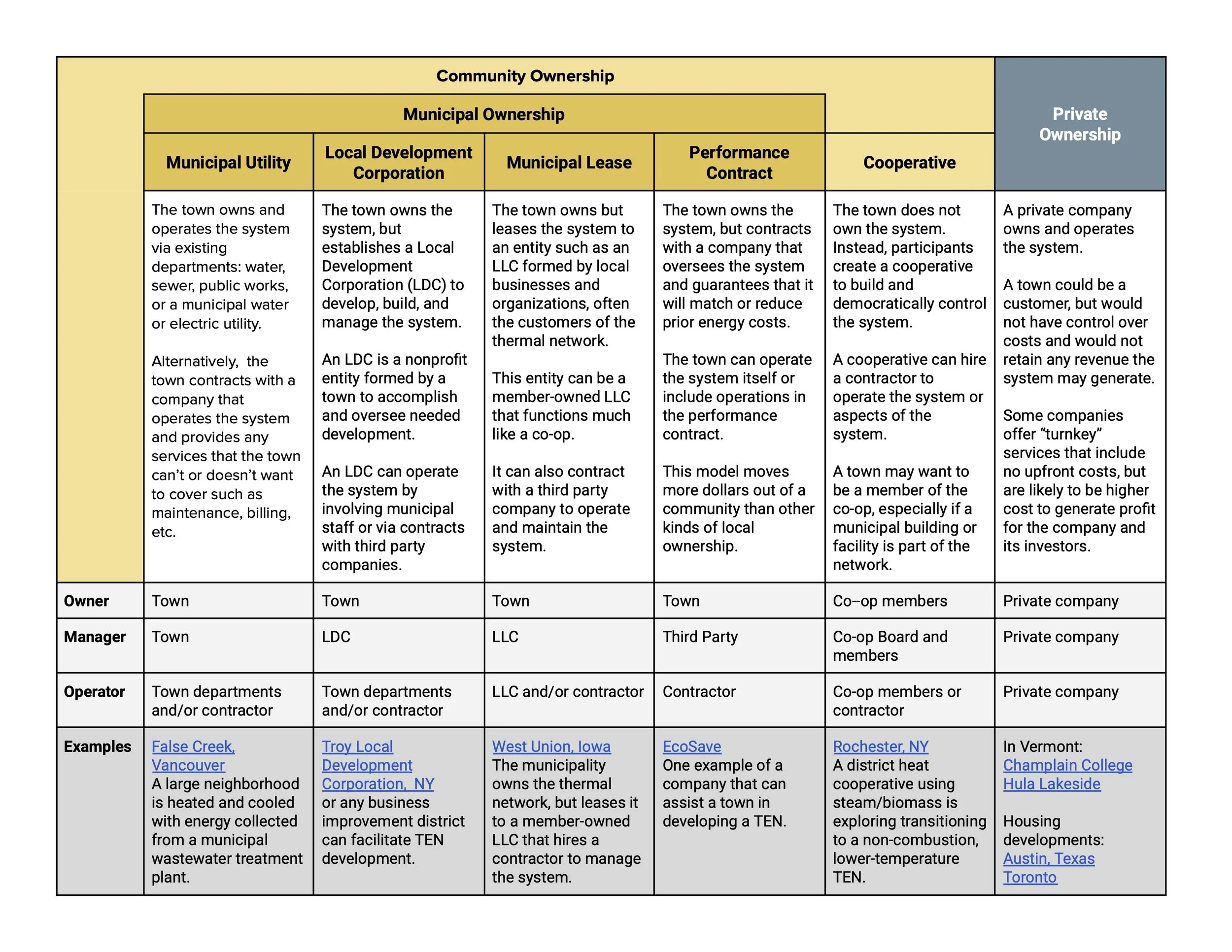 A short booklet on various choices communities can make about who owns and operates a Thermal Energy Network